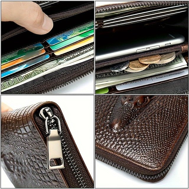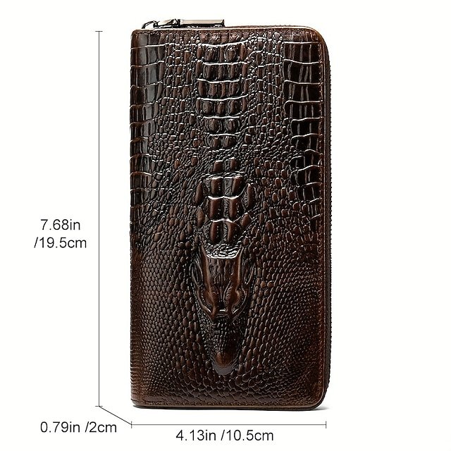 Gender: Men’s, Type: Credit Card Holder Wallet, Material: Cowhide, Embellishment: Zipper, Pattern: Crocodile, Occasion: Daily, Christmas, Width (cm): 2, Height (cm): 19.5, Length (cm): 10.5, Function: Lightweight, Durable, Category: Wallet,