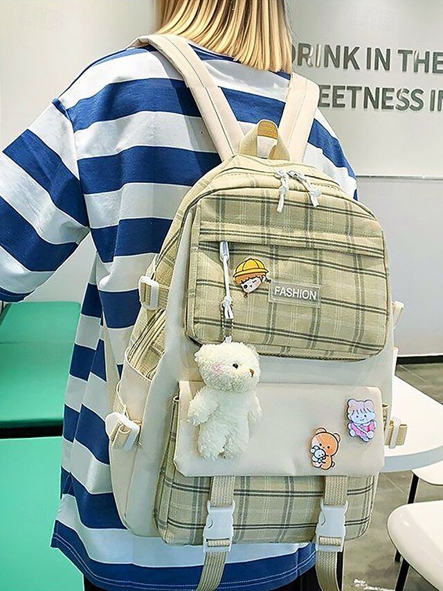 Teen Large Capacity Waterproof Backpack with Cute Toast Pendant
