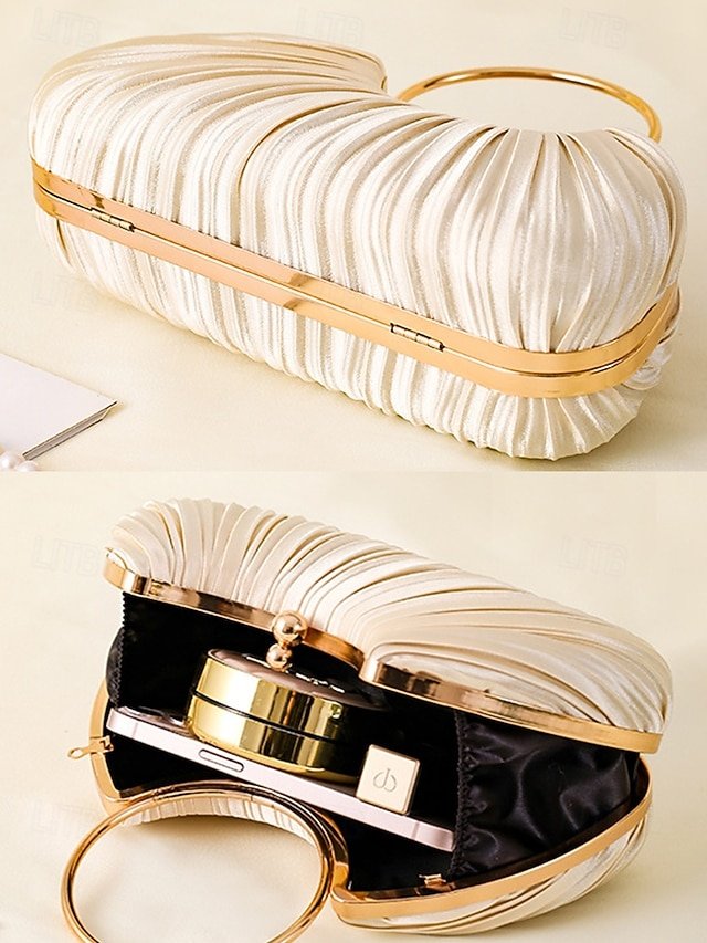 Gender: Women’s, Type: Shoulder Bags, Evening Bag, Material: Polyester, Embellishment: Chain, Wrinkles, Pattern: Solid Color, Occasion: Wedding Party, Party, Width (cm): 7.5, Height (cm): 19, Length (cm): 23, Function: Large Capacity, Multi Carry, Category: Clutch,