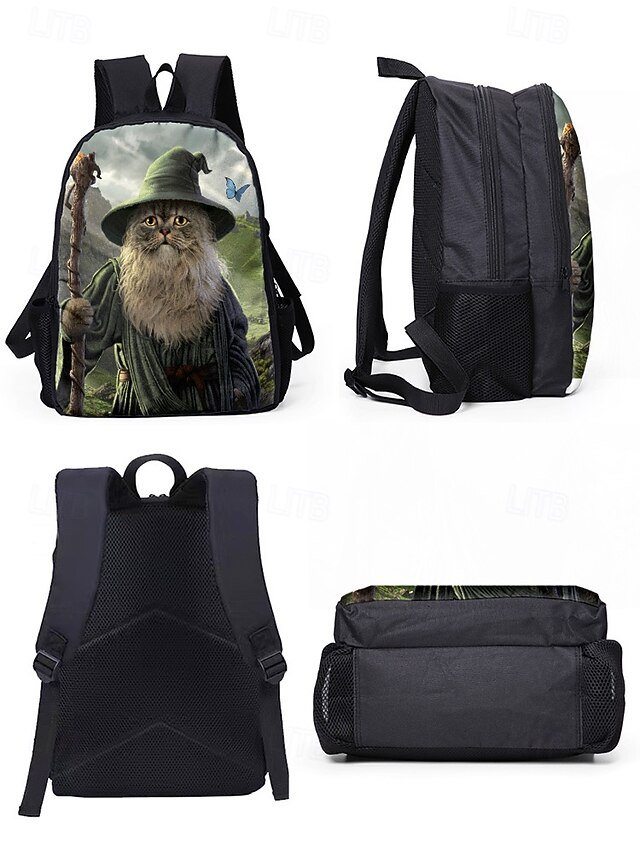 Kids’ 3-Piece Wizard Cat Backpack Set – Fantasy Cat Print