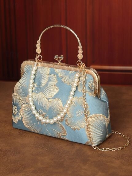 Women’s Elegant Pearl Handle Clutch Bag – Floral