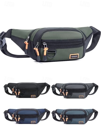 Men’s Black Nylon Travel Fanny Pack, Multi – Pocket Waist