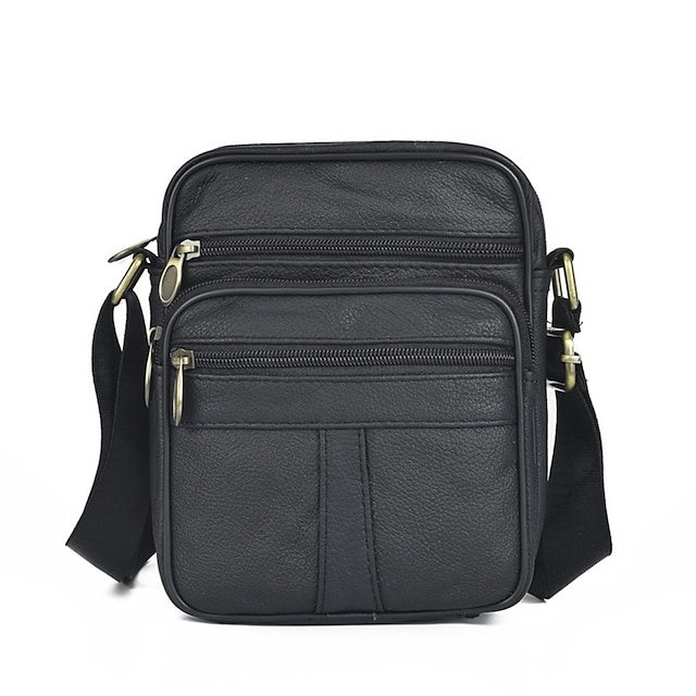 Men’s Brown Leather Crossbody Bag with Multiple Zipper