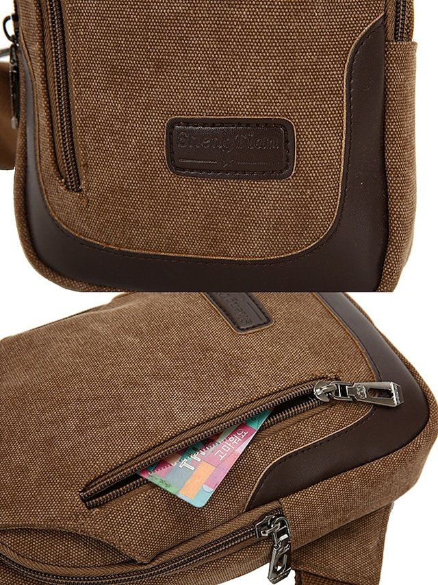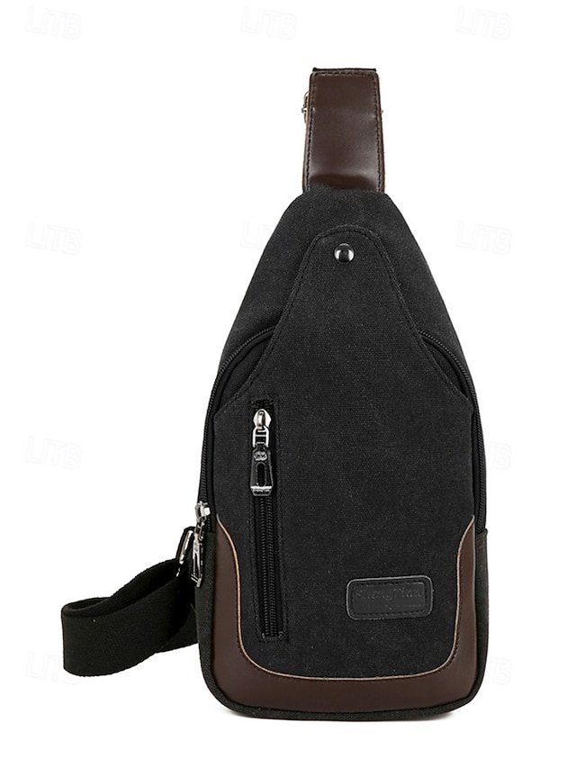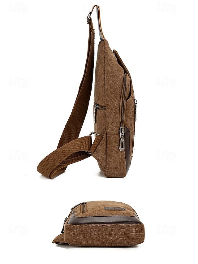 Gender: Men’s, Type: Chest Bag, Shoulder Bags, Material: Canvas, Embellishment: Zipper, Multiple pockets, Pattern: Patchwork, Adjustable strap: Adjustable, Occasion: Outdoor, Casual Daily, Width (cm): 7, Height (cm): 30, Length (cm): 17, Function: Lightweight, Large Capacity, Category: Crossbody Bag,