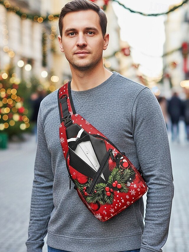 Gender: Men’s, Type: Chest Bag, Crossbody Bag, Material: Polyester, Embellishment: Zipper, Print, Pattern: Snowflakes, Christmas Tree, Detachable strap: Non-Detachable, Adjustable strap: Adjustable, Occasion: Outdoor, Christmas, Casual, Width (cm): 20, Height (cm): 38, Length (cm): 10, Function: Lightweight, Large Capacity, Multi Carry, Category: Crossbody Bag,