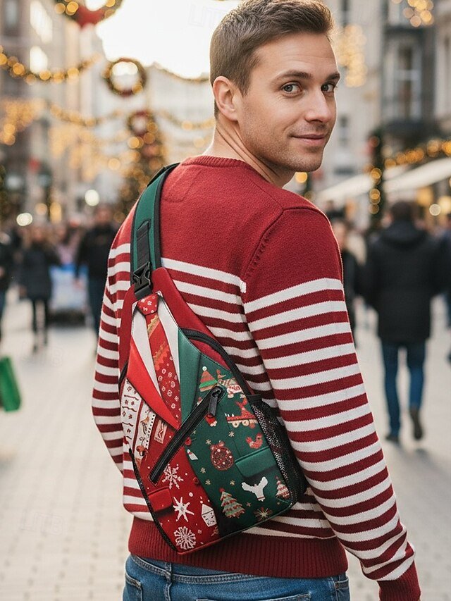 Men’s Christmas Sling Bag – Polyester, Multi-Pattern
