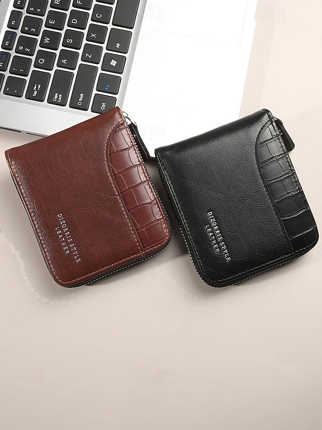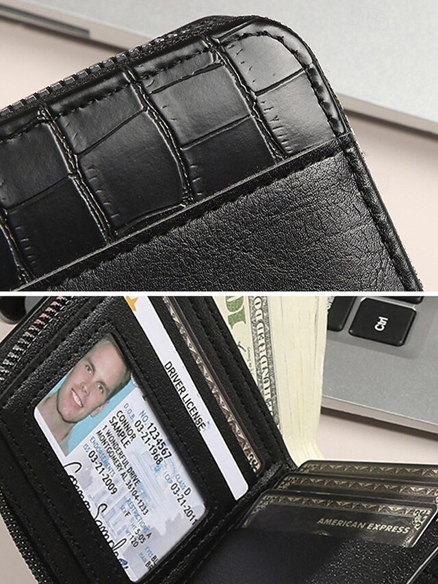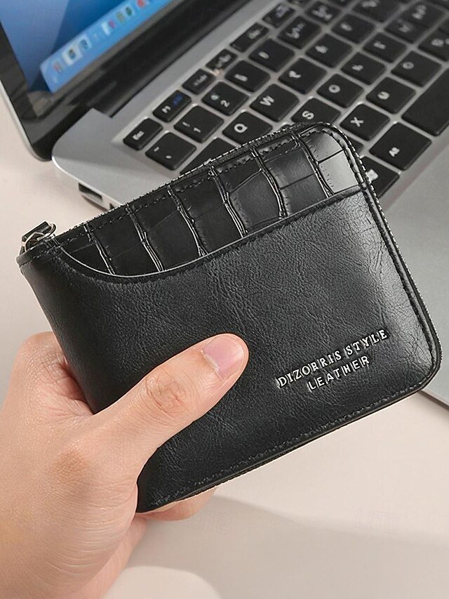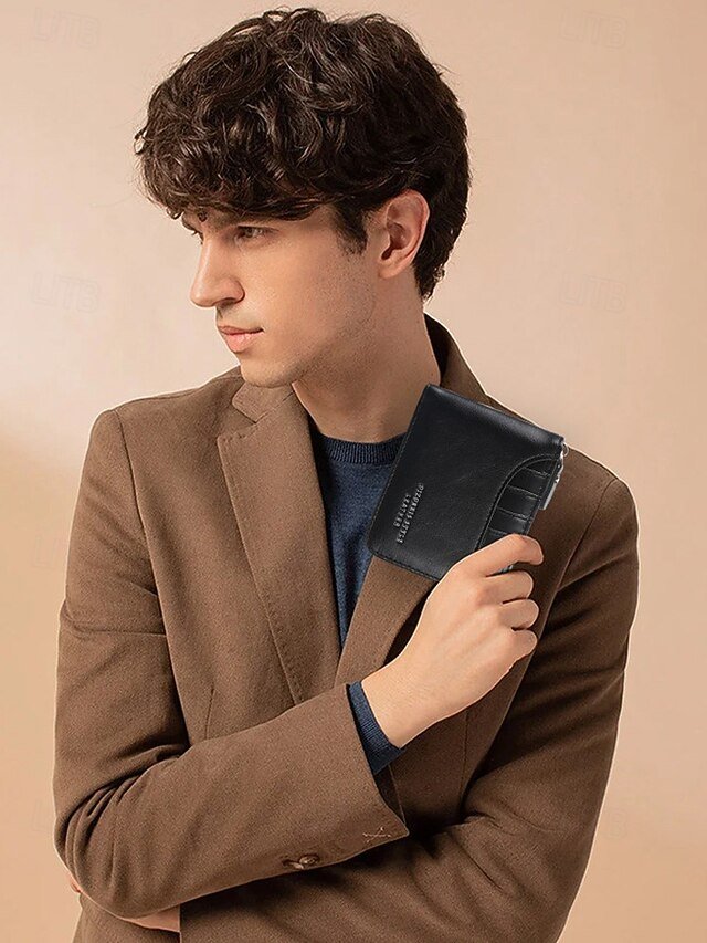 Gender: Men’s, Type: Credit Card Holder Wallet, Material: PU Leather, Embellishment: Zipper, Multiple pockets, Pattern: Solid Color, Adjustable strap: Non-Adjustable, Occasion: Father’s Day, Office, Casual, Width (cm): 9.5, Height (cm): 11.5, Length (cm): 2.5, Function: Lightweight, Durable, Category: Wallet,