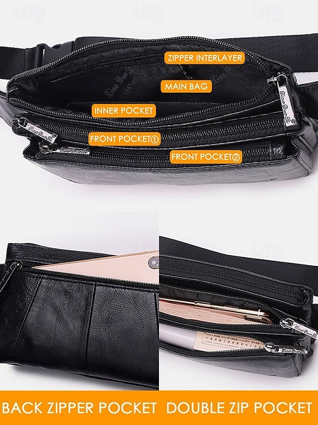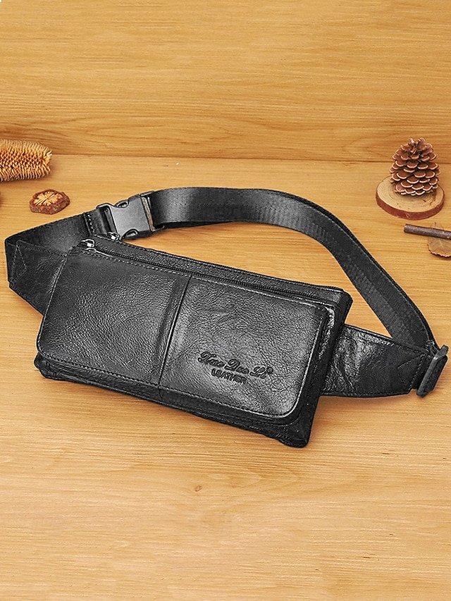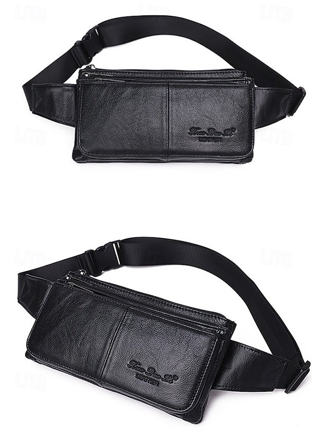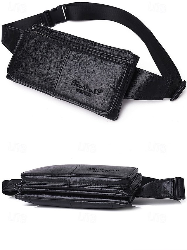 Gender: Men’s, Type: Fanny Pack, Chest Bag, Crossbody Bag, Material: Leather, Embellishment: Zipper, Multiple pockets, Pattern: Solid Color, Detachable strap: Non-Detachable, Adjustable strap: Adjustable, Occasion: Father’s Day, Outdoor, Casual Daily, Casual, Width (cm): 23, Height (cm): 12, Length (cm): 6, Function: Waterproof, Lightweight, Multi Carry, Category: Waist Bag,