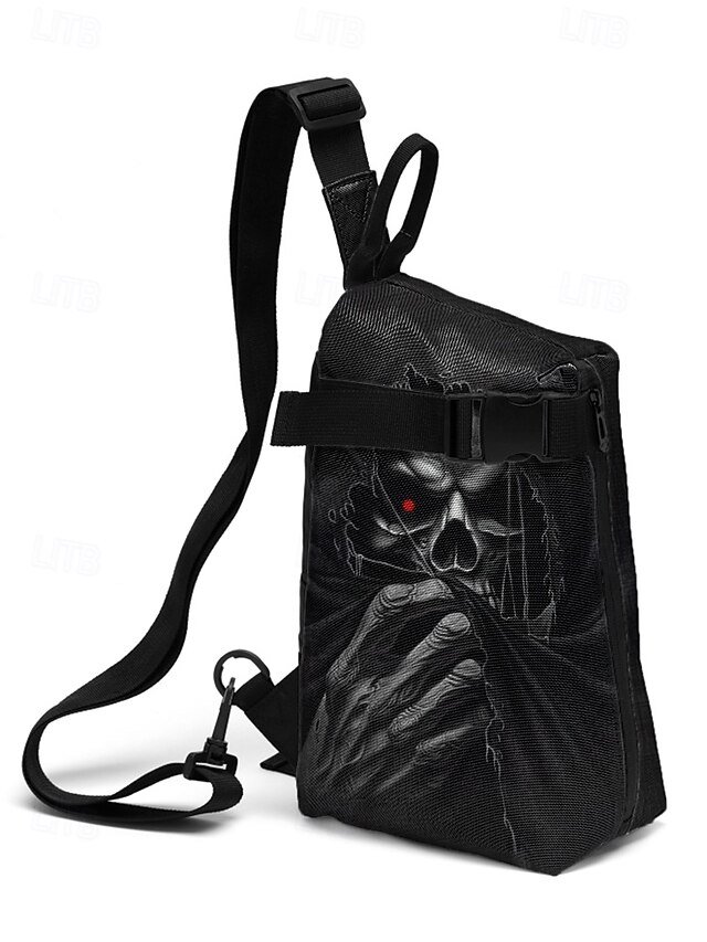 Gender: Men’s, Type: Chest Bag, Crossbody Bag, Material: Polyester, Embellishment: Zipper, Print, Pattern: Skull, Detachable strap: Non-Detachable, Adjustable strap: Adjustable, Occasion: Outdoor, Casual Daily, Width (cm): 15, Height (cm): 32, Length (cm): 16, Function: Lightweight, Large Capacity, Multi Carry, Category: Crossbody Bag,