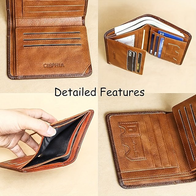 Men’s Large Capacity RFID Blocking Cowhide Leather Wallet