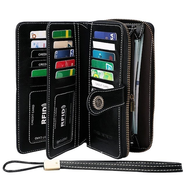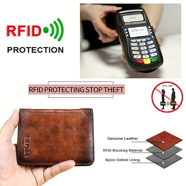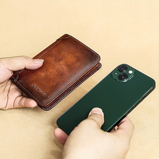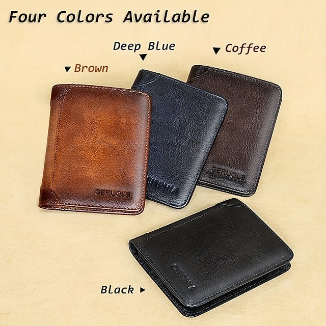 Gender: Men’s, Type: Credit Card Holder Wallet, Material: Cowhide, Embellishment: Zipper, Pattern: Solid Color, Occasion: Shopping, Daily, Width (cm): 1.5, Length (cm): 9.5, Height (cm): 12, Function: Foldable, Large Capacity, Durable, RFID Blocking, Category: Wallet,