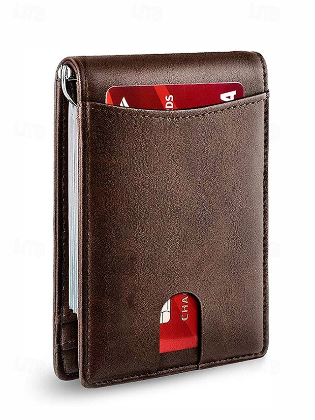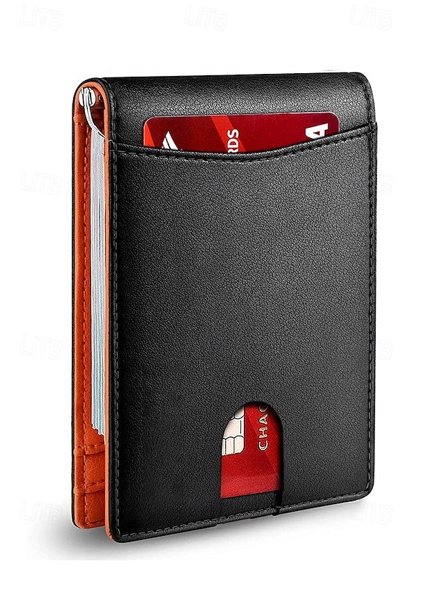 Gender: Men’s, Type: Credit Card Holder Wallet, Material: Cowhide, Leather, Embellishment: Embossed, Multiple pockets, Pattern: Solid Color, Occasion: Casual Daily, Office, Width (cm): 1.5, Height (cm): 10.8, Length (cm): 7.7, Function: Large Capacity, RFID Blocking, Category: Wallet,