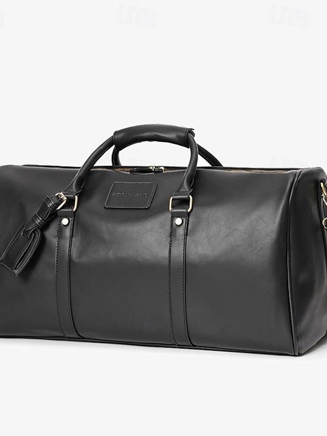 Gender: Men’s, Type: Duffle Bag, Material: PU Leather, Embellishment: Zipper, Pattern: Solid Color, Detachable strap: Detachable, Adjustable strap: Adjustable, Occasion: Travel, Outdoor, Holiday, Width (cm): 27, Height (cm): 29, Length (cm): 50, Function: Waterproof, Large Capacity, Multi Carry, Category: Handbag,