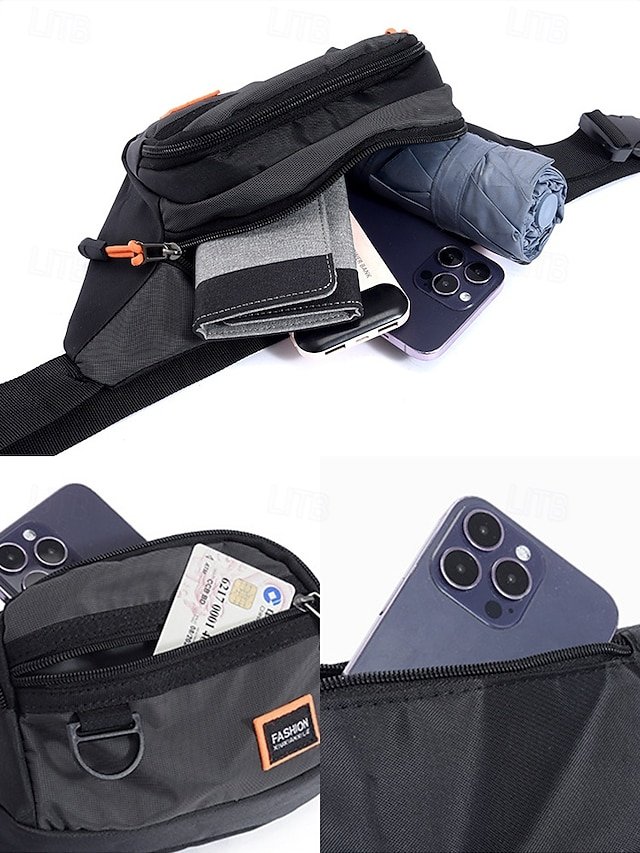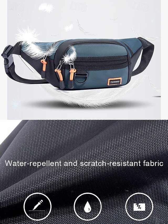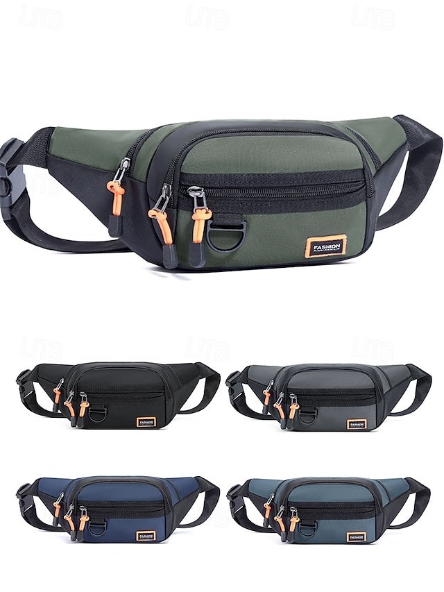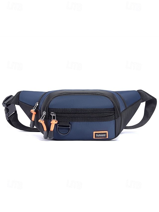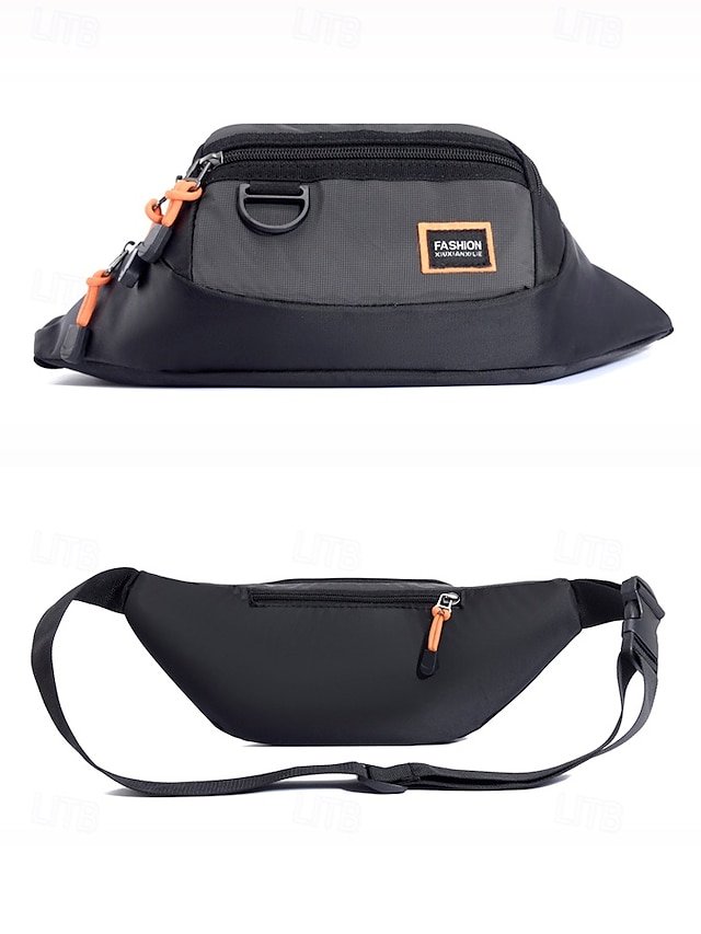 Gender: Men’s, Type: Fanny Pack, Chest Bag, Crossbody Bag, Material: Nylon, Embellishment: Zipper, Multiple pockets, Pattern: Solid Color, Detachable strap: Non-Detachable, Adjustable strap: Adjustable, Occasion: Outdoor, Casual Daily, Casual, Width (cm): 34, Height (cm): 14, Length (cm): 7, Function: Waterproof, Lightweight, Multi Carry, Category: Waist Bag,
