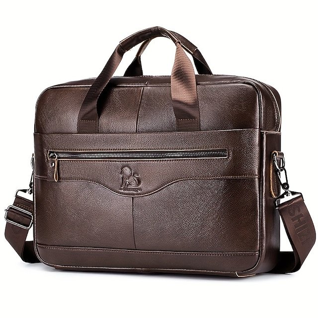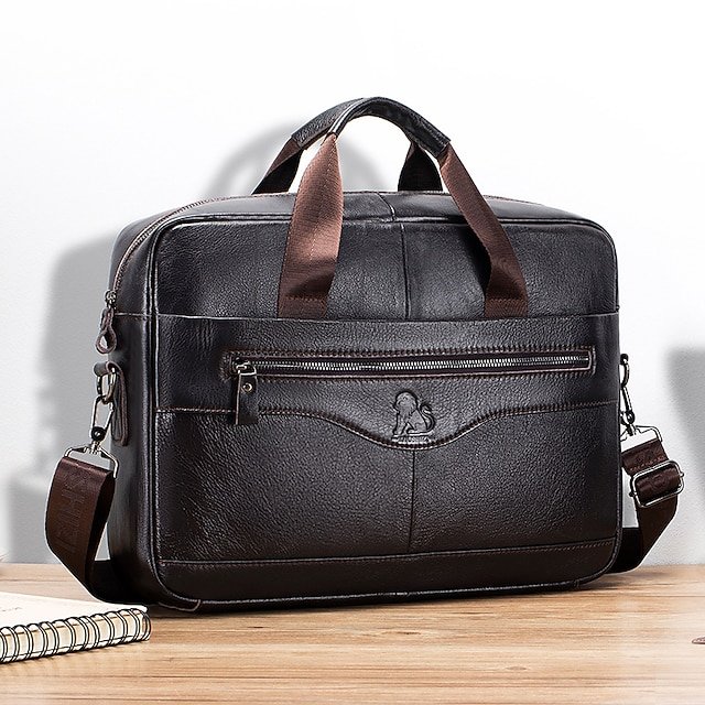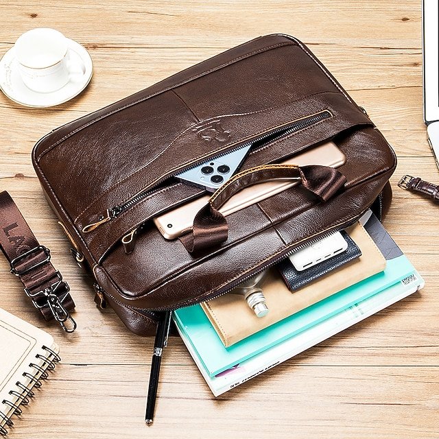 Gender: Men’s, Type: Laptop Bag, Material: Leather, Cowhide, Embellishment: Zipper, Pattern: Solid Color, Occasion: Daily, Office, Width (cm): 8.5, Length (cm): 40.5, Height (cm): 29, Function: Waterproof, Breathable, Category: Briefcase, Handbag, Crossbody Bag,