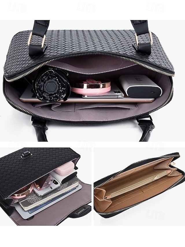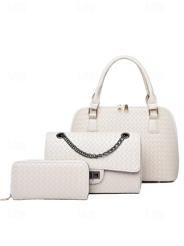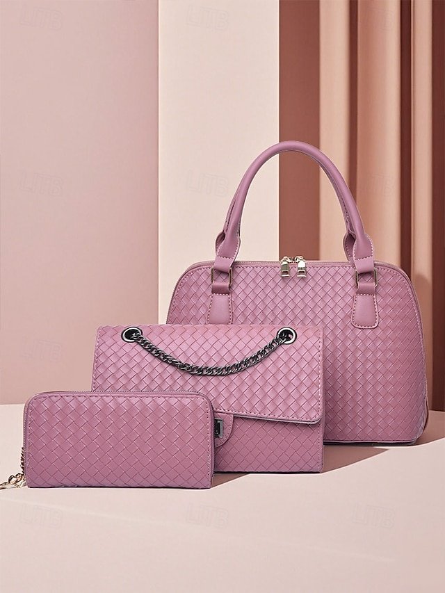 Women’s 3-Piece Brown Woven Faux Leather Handbag Set –