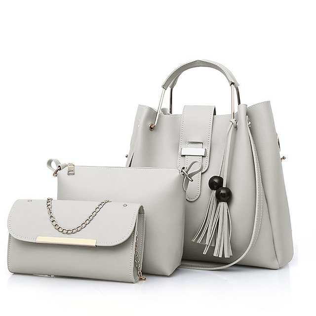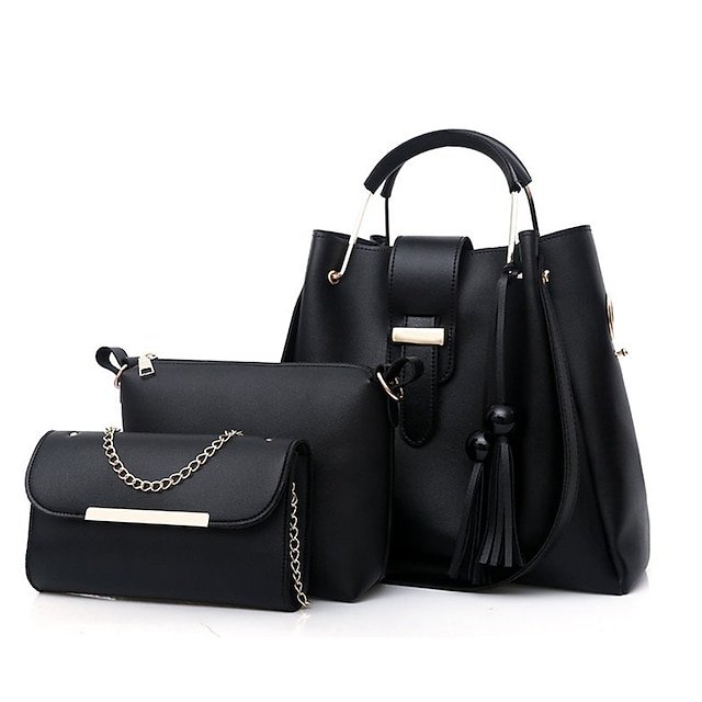 Gender: Women’s, Type: Bucket Bag, Material: PU Leather, Quantity: 3 Pieces, Embellishment: Zipper, Chain, Tassel, Pattern: Solid Color, Occasion: Shopping, Daily, Valentine’s Day, Outdoor, Office, Width (cm): 14, Length (cm): 33, Height (cm): 30, Function: Large Capacity, Category: Bag Set, Handbag, Crossbody Bag, 2025 Trends: Bag Sets, Handbags,