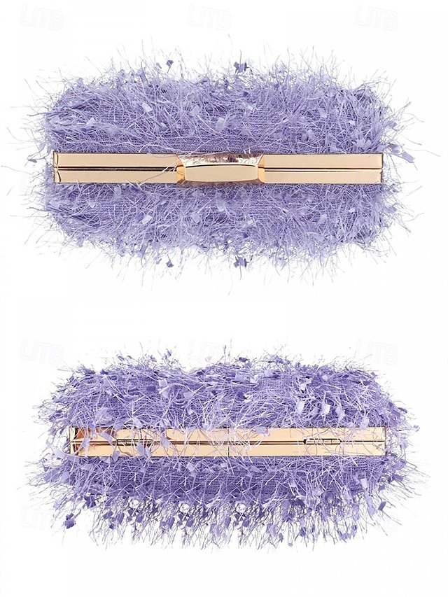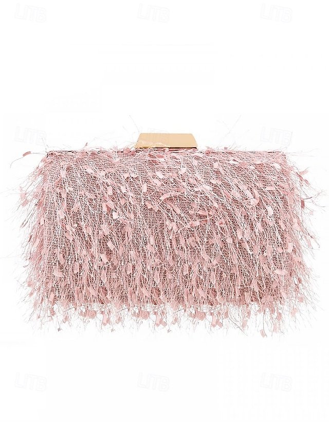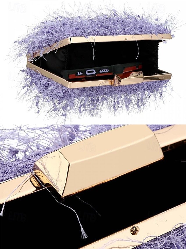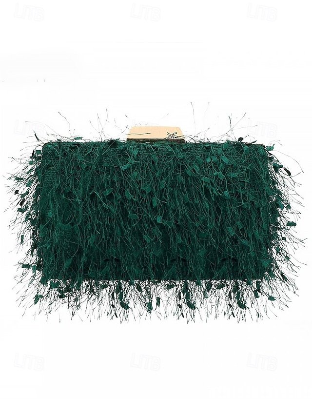 Women’s Chic Feathered Evening Clutch with Chain Strap,