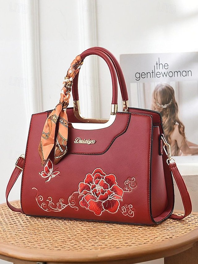Gender: Women’s, Type: Crossbody Bag, Shoulder Bags, Material: PU Leather, Embellishment: Embroidery, Zipper, Scarves, Pattern: Flower, Detachable strap: Detachable, Adjustable strap: Adjustable, Occasion: Mother’s Day, Office, Casual Daily, Width (cm): 12, Height (cm): 22, Length (cm): 29, Function: Waterproof, Multi Carry, Category: Handbag,