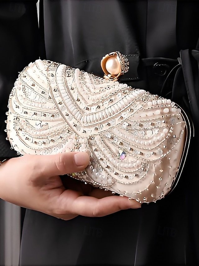 Elegant White Lace Evening Handbag with Pearl and Floral