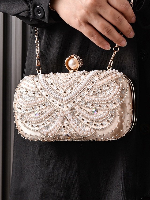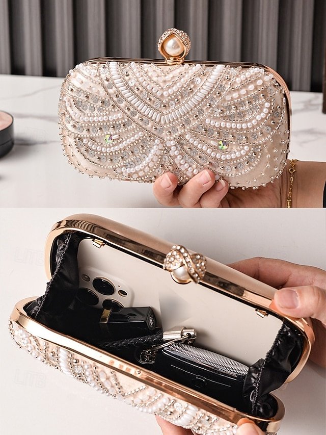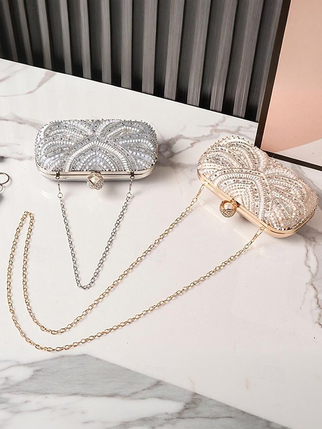 Gender: Women’s, Type: Evening Bag, Shoulder Bags, Material: Gretel Materials, Embellishment: Crystals, Chain, Pattern: Solid Color, Detachable strap: Detachable, Adjustable strap: Non-Adjustable, Occasion: Party, Wedding Party, Width (cm): 19.5, Height (cm): 10, Length (cm): 5, Function: Multi Carry, Category: Evening Bag,
