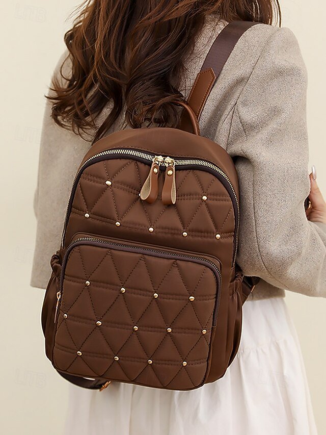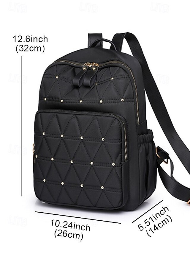 Gender: Women’s, Type: School Bag Bookbag, Commuter Backpack, School Backpack Bookbag, Material: Polyester, Nylon, Oxford Cloth, Embellishment: Rivet, Zipper, Pattern: Solid Color, Occasion: Daily, School, Width (cm): 26, Height (cm): 32, Length (cm): 14, Function: Waterproof, Lightweight, Large Capacity, Category: Backpack,