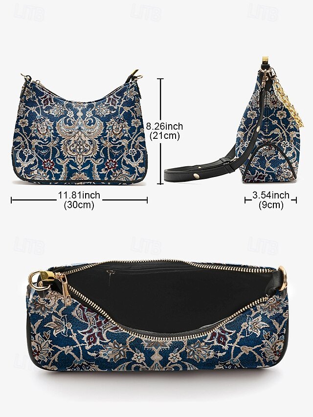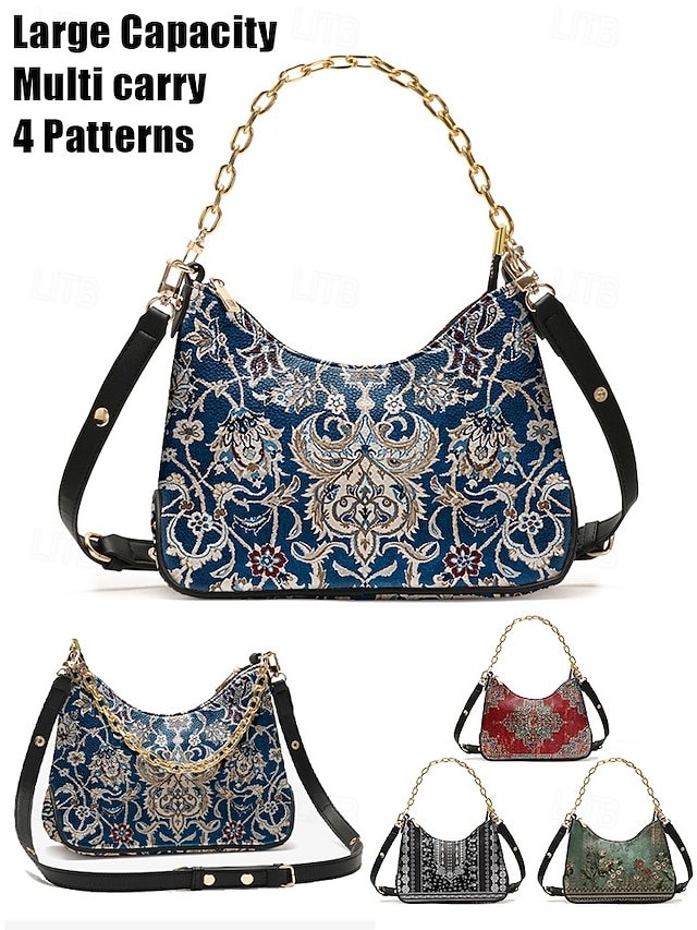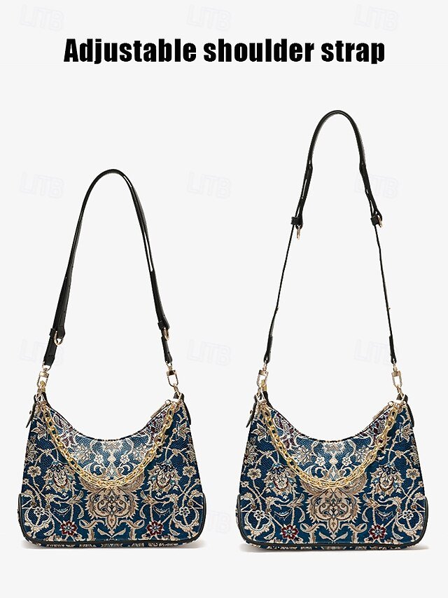Gender: Women’s, Type: Crossbody Bag, Baguette Bag, Shoulder Bags, Material: PU Leather, Embellishment: Zipper, Chain, Print, Pattern: National Totem, Detachable strap: Detachable, Adjustable strap: Adjustable, Occasion: Office, Casual Daily, Width (cm): 9, Height (cm): 21, Length (cm): 30, Function: Waterproof, Multi Carry, Category: Handbag,