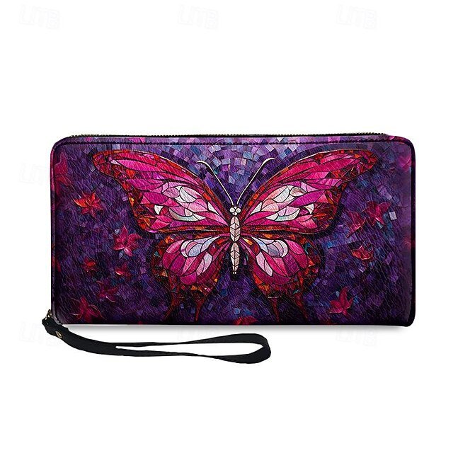Gender: Women’s, Type: Coin Purse, Credit Card Holder Wallet, Material: PU Leather, Embellishment: Zipper, Pattern: Butterfly, Occasion: Shopping, Holiday, Daily, Width (cm): 2, Height (cm): 11, Length (cm): 20, Function: Large Capacity, Durable, Category: Wallet,